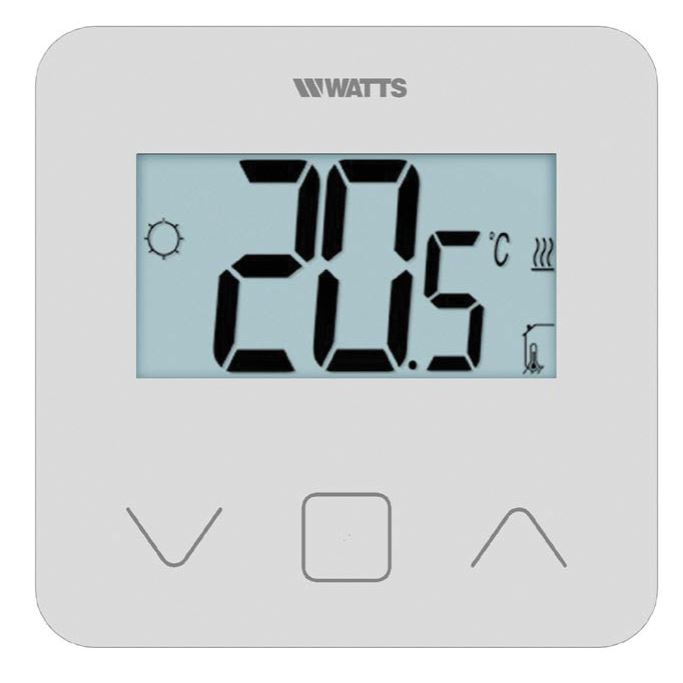 Nástenný digitálny priestorový termostat s displejom pre zobrazovanie a nastavovanie teploty.Bez časového programu. Možnosť útlmovej prevádzky.