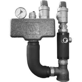 2 poistné ventily 3 bary, manometer, automatický odvzdušňovací ventil s uzatváracou automatikou, integrovaný rozvádzač na armatúry so 4 prípojkami na 2 obmedzovače tlaku 1/2", teplomer / manometer 1/2" a expanznú nádobu 3/4