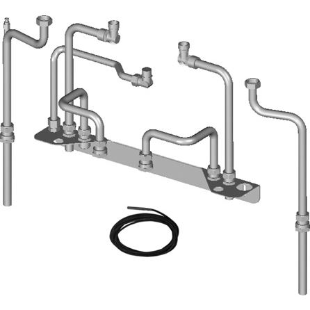 obsahuje: pripájaciu konzolu na ohrievač vody, rúrky na pripojenie prívodu a spiatočky kotla na konzolu, plynová rúrka na pripojenie kotla na konzolu, pripájacie rúrky na prívod a spiatočku ohrievača, rúrky na pripojenie teplej a studenej vody z ohrievača