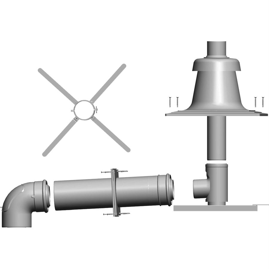 biela, na pripojenie kotla nezávislé na vzduchu miestnosti, obsahuje:- revízne koleno 87°- rúru DN 80/125 dĺžky 500 mm- rozetu- oporné koleno 87° s podperou- 4 dištančné držiaky- plastový kryt šachty s integrovaným vedením spalín a vzduchuNa prip