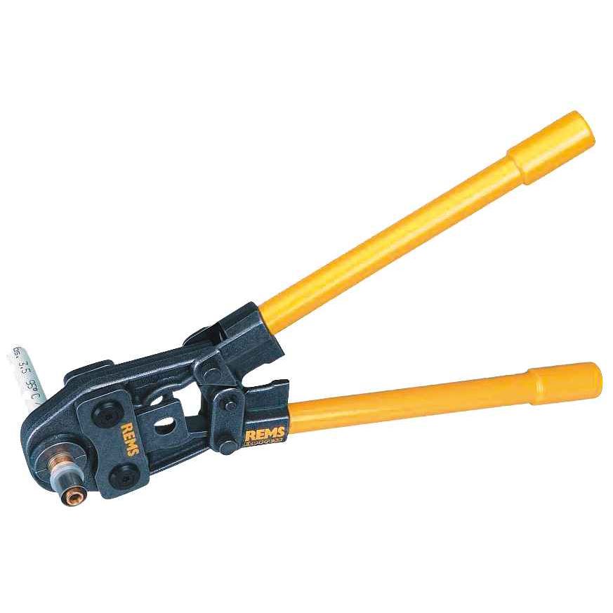 Rems Eco-Pres 2000 ručný prístroj s krátkymi rúrkovými ramenami do priemeru 26 mm, hmotnosť 1,6 kg, bez čeľustí.