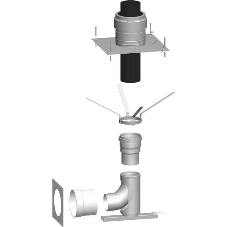 Vyhotovenie: závislé na vzduchu miestnostiSúprava obsahuje:- plastový kryt šachty DN 110 čierny- 6 dištančných držiakov- oporné koleno 87° DN 110 s podperou *- prechod stenou DN 110/160 z ušľachtilej ocele- rozeta DN 160 z ušľachtilej ocele- masti