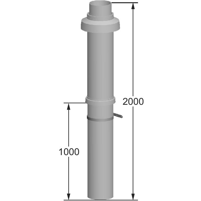 z polypropylénu, čierna, bez prívodu vzduchu,obsahuje:- rúru na zvislý prechod šikmou alebo plochou strechou dĺžky 2000 mm s upevňovacou objímkou