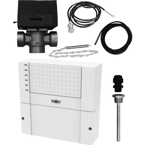 obsahuje: 3-cestný ventil, 1 solárny modul SM1-2 so snímačom spiatočky vykurovania (NTC 5K) a snímačom ohrievača vody (PT1000) s ponorným puzdrom