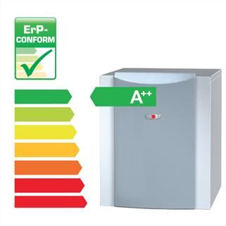 Vysoko účinné tepelné čerpadlo so zabudovanými čerpadlami triedy A pre vykurovanie a okruh soľanky a prepínacím ventilom pre TVTrieda sezónne energetickej účinnosti vykurovania za priemerných klimatických podmienok (55 ° C): A ++