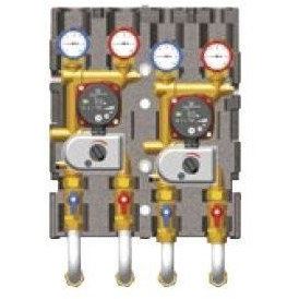 2 obehové čerpadlá DN 15-50 trojstupňové alebo modulované triedy A, dva 3-cestné zmiešavače DN 20, kvs=4,0 so servopohonmi (230 V/210 s), po 2 guľové kohúty v prívode a spiatočke na servis bez vypúšťania