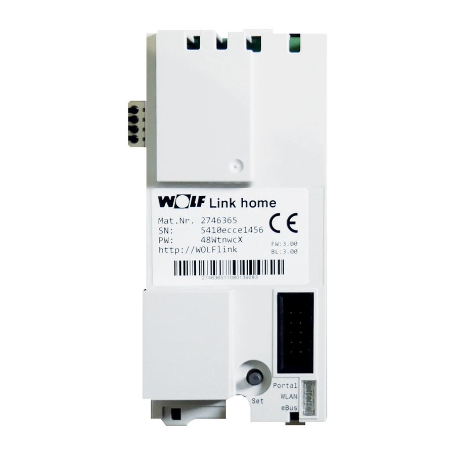 s integrovaným rozhraním LAN a WLAN na pripojenieregulačného systemu Wolf k počítačovej sieti.Obsahuje: modul Wolf LINK HOME, pripájací kábel,návod k montáži a obsluhe, sieťový kábelPozn.: Použiť kryt rozšir. dosky obj. č. 2747551