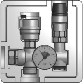 poistný ventil 3 bary, manometer, automatický odvzdušňovací ventil s uzatváracou automatikou, kompletne zmontovaná s tepelnou