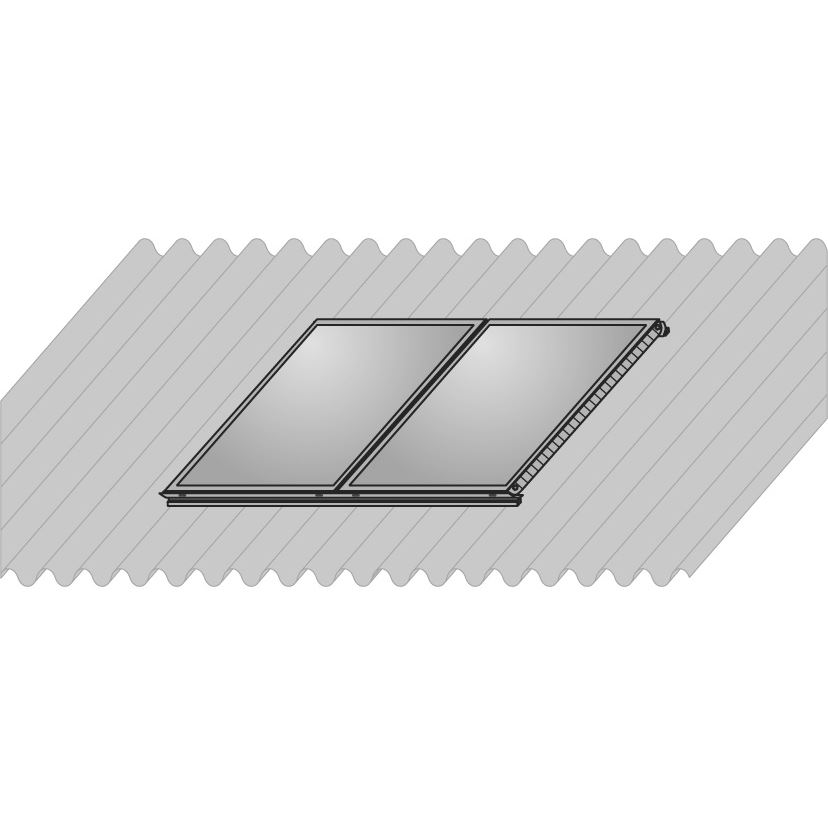 na strechu pokrytú vlnitou/plechovou krytinou, obsahuje: – 2 montážne lišty AluPlus dĺžky 2 m – 6 závrtných skrutiek