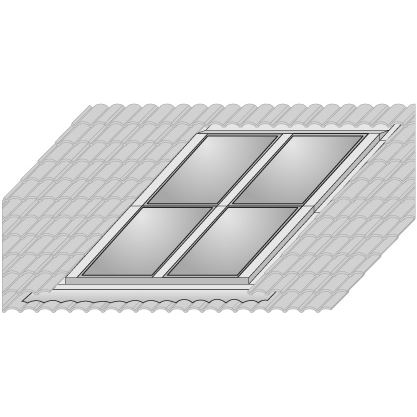 pokrytej falcovkou/bobrovkou, so sivočiernou tesniacou lištou v tvare strešného kotviaceho rámu z potiahnutého hliníkového plechu sivočiernej farba na architektonicky pekné integrovanie kolektorov do strechy so sklonom 20°až 60°.