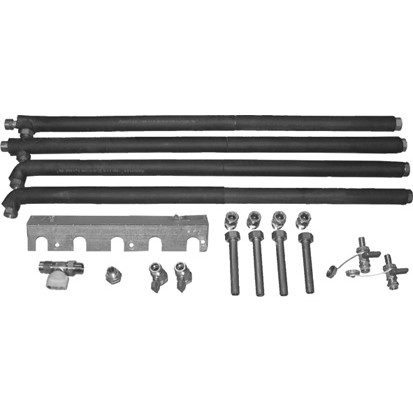 nástennú konzolu, 4 izolované medené rúrky 18x1, 2 kohúty na napúšťanie a vypúšťanie vykurovacieho okruhu, plynový ventil s tepelnou poistkou a 2 uzatváracie kohúty vyku
